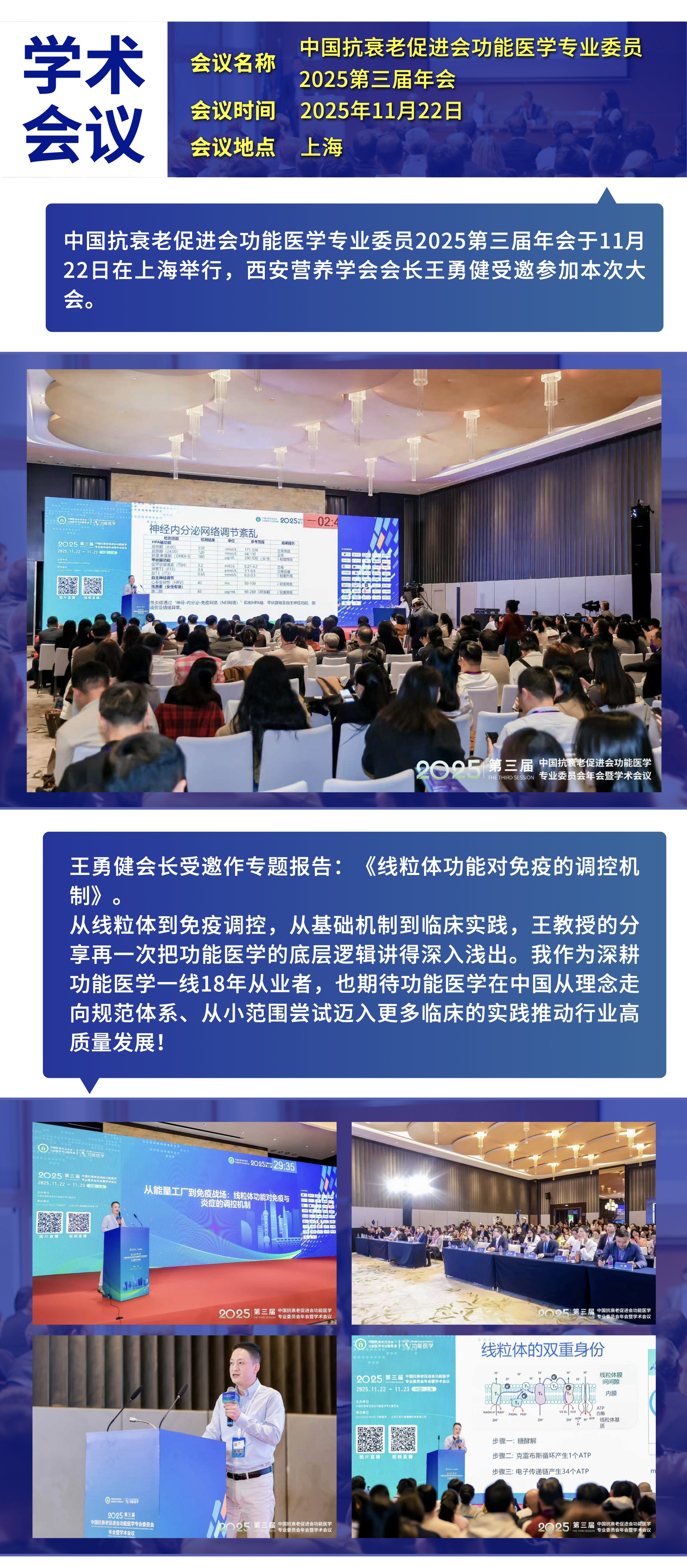 西安营养学会副会长、陕西省健康管理师协会会长王勇健受邀参加,并在大会上作《打造全程健康管理的功能医学平台》专题学术报告。